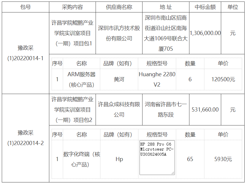 bet36体育在线鲲鹏产业学院实训室项目(一期)项目-中标公告