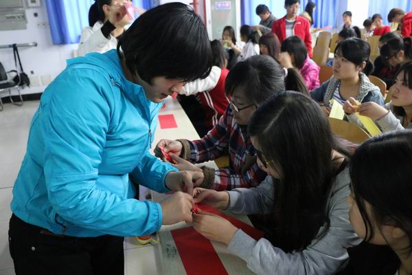 ???为深入开展基础文明建设暨女生“自尊、自爱、自信、自强”主题教育活动,4月11日下午,bet36体育在线在A合四教室举行了“心灵手巧”女生创意手工作品教学体验活动。活动吸引了来自全校各院部的200多名女生参加。