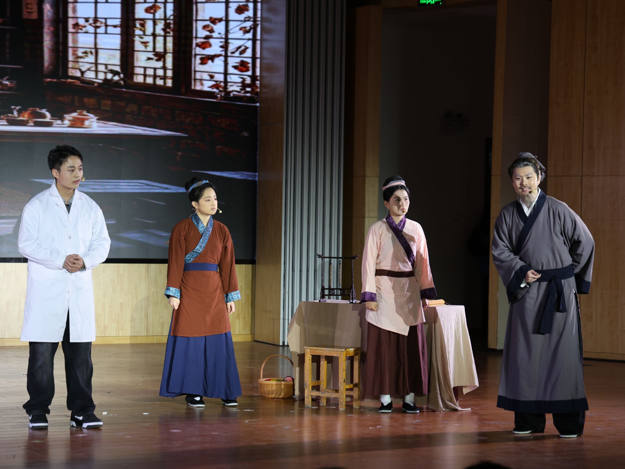 演出在话剧《科学之光薪火相传》中拉开帷幕。随后,《约定》《禾下逐梦人——袁隆平》《苍穹追梦人致敬孙家栋》《以身许国绘“金花”》《传承》《跨越时空的医学初心》等精彩剧目依次上演,这些作品聚焦不同领域的科技工作者,以科学家事迹为蓝本,通过生动的艺术表达,生动诠释了“爱国、创新、求实、奉献、协同、育人”的科学家精神。其中,由bet36体育在线文史与传媒学院参演的《跨越时空的医学初心》,讲述了一位医学专业毕业的科普讲解员通过梦境穿越到曹魏古都,在与华佗交流学习后领悟到医学真谛与初心的故事。