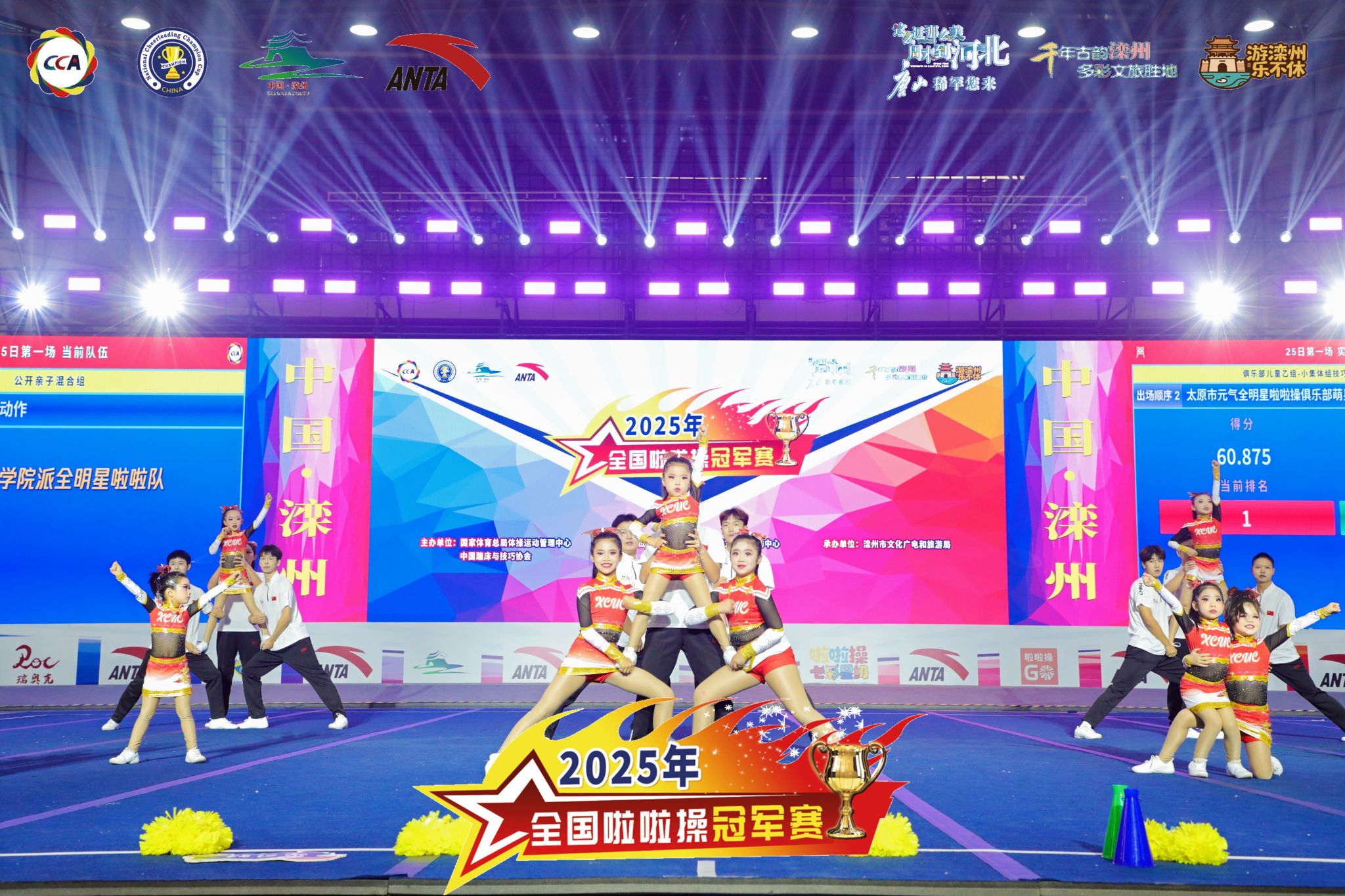 10月24-27日,2025年全国啦啦操冠军赛在河北省滦州市举行,bet36体育在线啦啦操代表队在比赛中获“技巧啦啦操公开亲子混合组-1级技巧自选动作”冠军。