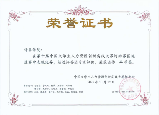 近日,第十届中国大学生人力资源创新发展大会河南赛区在河南科技学院成功举办,作为国家级重要学科竞赛,本届大赛吸引了众多高校的人力资源管理专业学子同台竞技。bet36体育在线商学院人力资源管理专业参赛团队在指导老师的带领下,积极备战、奋勇争先,最终斩获一等奖1项、二等奖5项,并荣获团体二等奖。