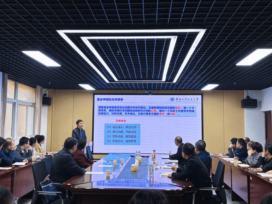 会上,华北水利水电大学赵荣钦教授以《国家自然科学基金申报的注意要点》为题作辅导报告。他结合申报国家自然科学基金的经历,系统梳理了从选题凝练、立项依据、研究内容、技术路线到可行性分析等关键环节的撰写要点与常见误区。并结合自身在“水—能—碳”耦合研究方面的实践案例,展示了如何将理论问题与现实需求相结合,为相关研究方向教师提供了宝贵借鉴。(图片由地理与空间信息学院提供)