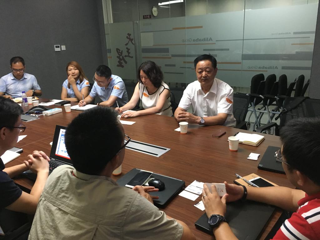 挂职许昌县人民政府副县长的沈春光(右二)到阿里巴巴对接海外监管仓项目