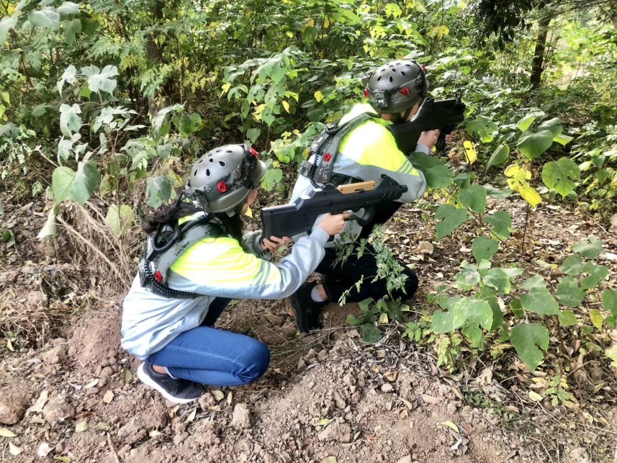 同学们正在参加拓展运动会“真人cs之求生战场”比赛项目