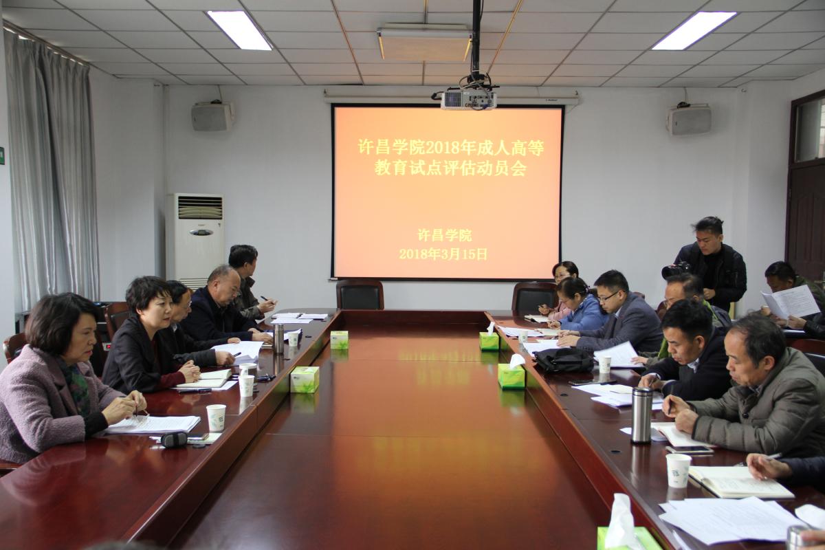3月15日下午,bet36体育在线迎接河南省教育厅成人高等学历教育试点评估工作动员会在办公楼第一会议室召开。副院长黄怡俐出席会议并讲话。相关职能部门负责人、相关学院院长以及继续教育学院成教工作负责人等参加了动员会。会议由继续教育学学院直属党支部书记赵新军主持。
