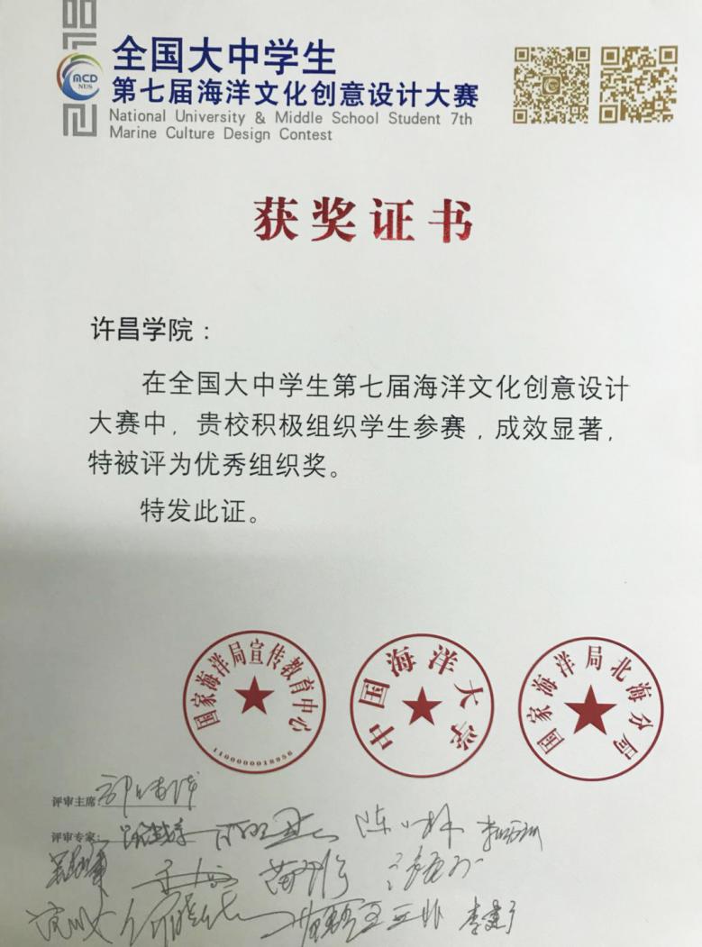 近日,全国大中学生第七届海洋文化创意设计大赛颁奖典礼暨2018创意设计论坛在上海举行。bet36体育在线设计艺术学院3名学生分别取得优秀奖与入围奖,2名老师获得指导老师奖,bet36体育在线被授予”优秀组织奖”。