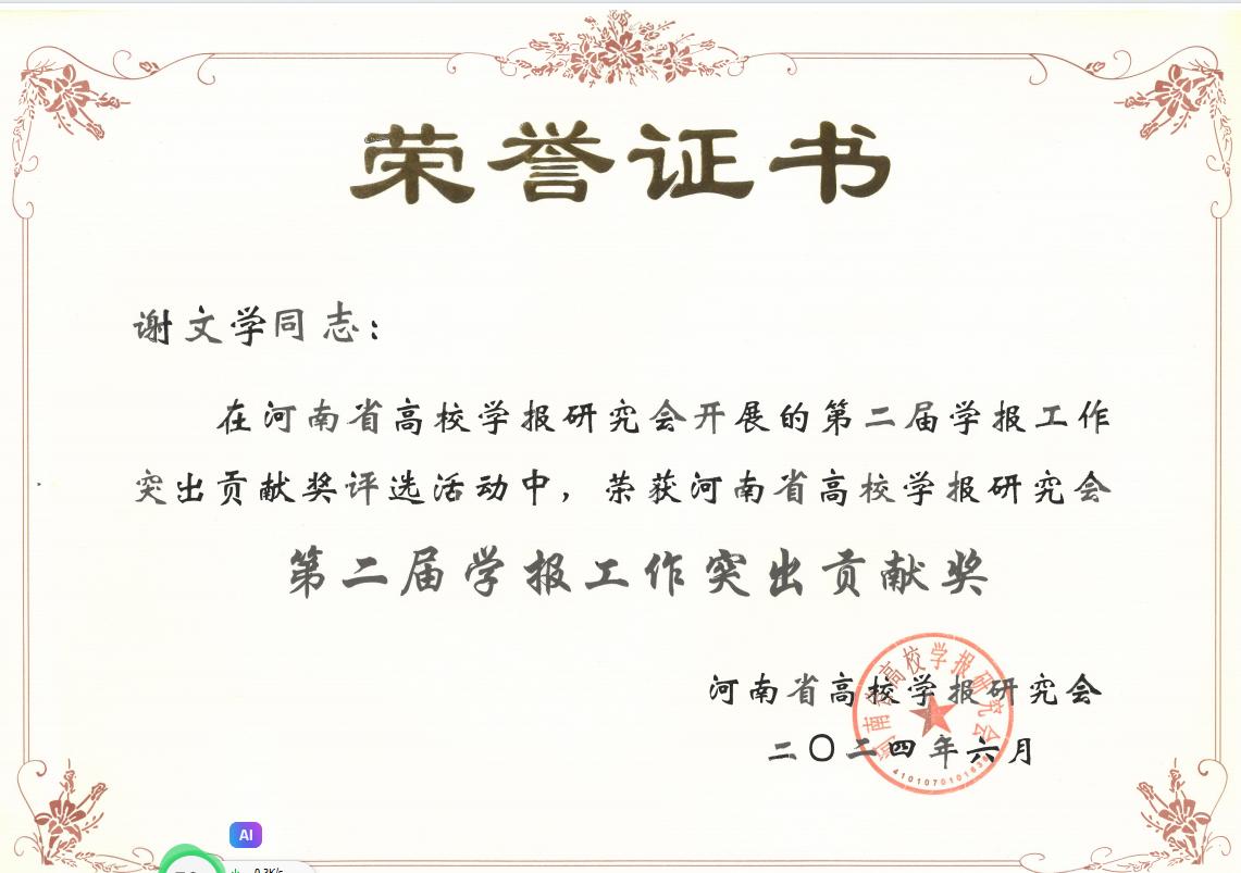 6月14-16日,河南省高校学报研究会成立四十周年暨第九届会员代表大会在南阳师范学院举行。会议回顾了研究会的工作成就,选举产生了新一届研究会理事会,并对河南省第二届学报工作“突出贡献奖”和“优秀征文奖”进行表彰。bet36体育在线学报编辑部退休教师谢文学获“突出贡献奖”,多篇作品获“优秀征文奖”。