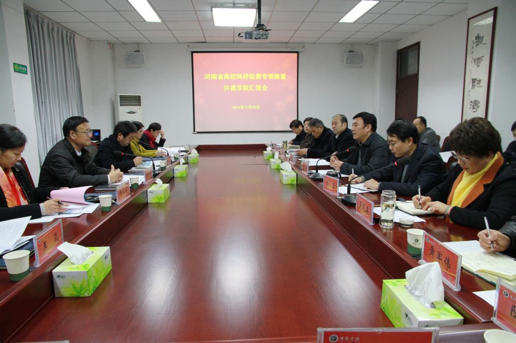 11月29日到30日,由省教育厅副巡视员赵国河担任组长、教育厅科技处副处长张水潮担任副组长的河南省教育厅科研经费专项检查组一行6人莅临bet36体育在线,对bet36体育在线科研经费管理和使用情况进行专项检查。在2天的检查期间,检查组人员通过听取汇报、查阅管理制度、审查财务资料、座谈交流、审查项目经费、开展问卷调查等认真细致的检查工作,30日下午,检查组对检查结果进行反馈,bet36体育在线以“优秀”成绩顺利通过本次专项检查。党委书记王清义,副院长郑直、崔斌,纪委书记罗凤英等学校领导接待了检查组一行并听取了检查反馈。