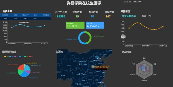 大河网讯 8月24日,在bet36体育在线信息工程学院,记者通过大屏幕看到:大屏上实时显示着在校生人数,院系、专业、班级情况,以及消费、图书馆借阅情况等。输入学生学号,就可以纵览某个学生的各科成绩及学业情况,系统根据数据及时进行分析,对“不良”学业情况进行预警,并给出解决策略,实现个性化定制学生施教方案。