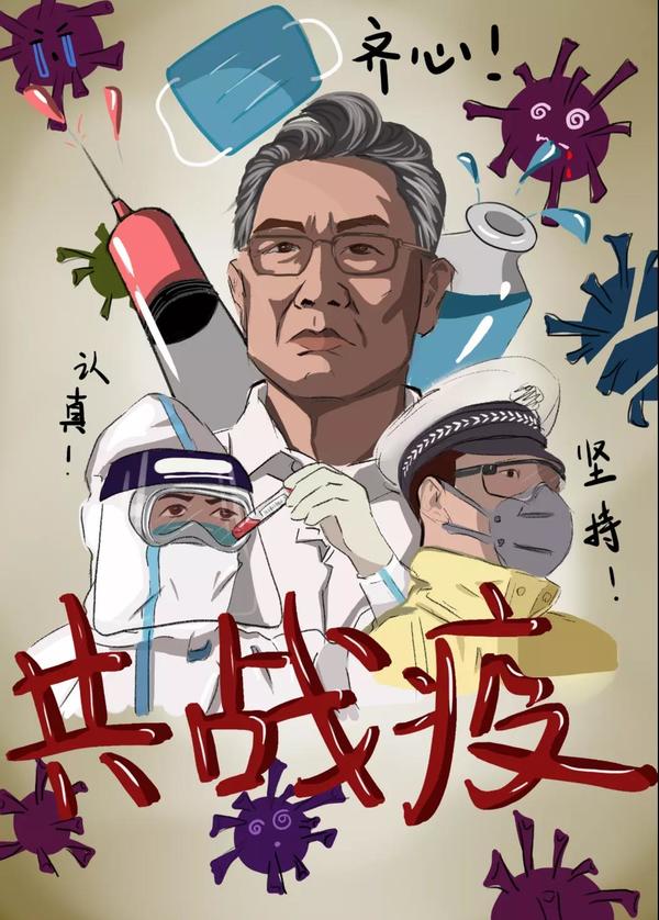 bet36体育在线2019级视觉传达一班学生王宇雯的《同心协力,共同抗疫》