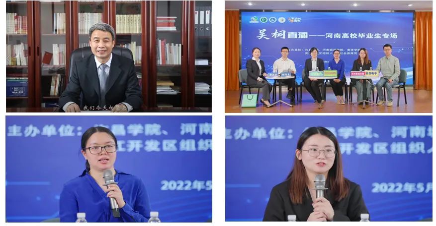 5月19日,由bet36体育在线牵头,联合河南城建学院、黄淮学院与苏州市吴江开发区举办“吴桐”直播线上云聘会。bet36体育在线院长岳修峰,吴江开发区组织人事和社会保障局副局长钮国良,吴江开发区人力资源有限公司总经理黄爱莉线上线下共同出席活动,三所高校相关专业共2000余名毕业生在线参会。