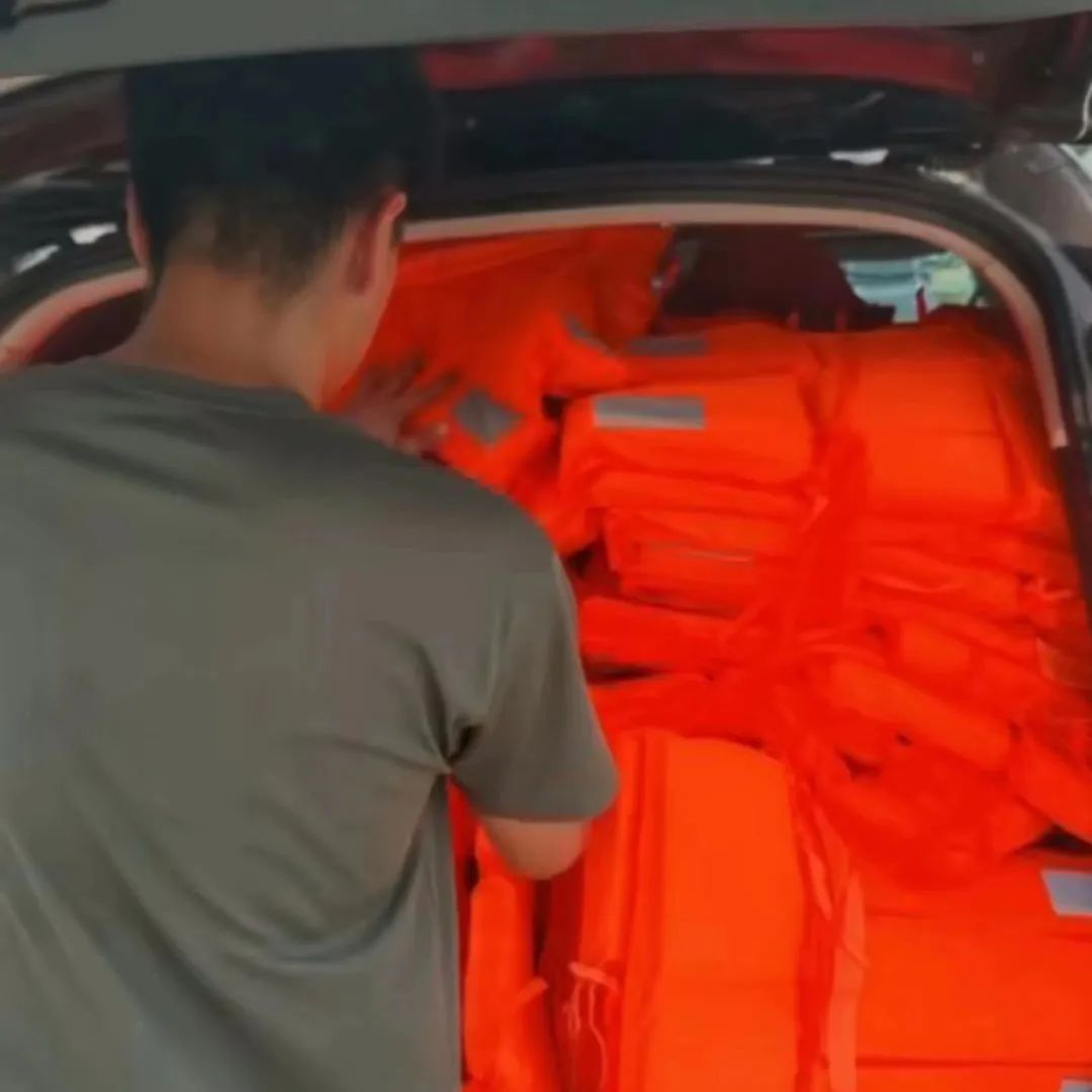 次日凌晨1点,李庆贺经过多方打听,得知郑州有批救生衣出售,立即与老板取得联系购买。天亮后,早饭没来得及吃的他,便和马谕彬马不停蹄地从鹤壁自驾前往郑州取救生衣,上午11点装车完后出发,于晚上8点将物资送达河北涿州。