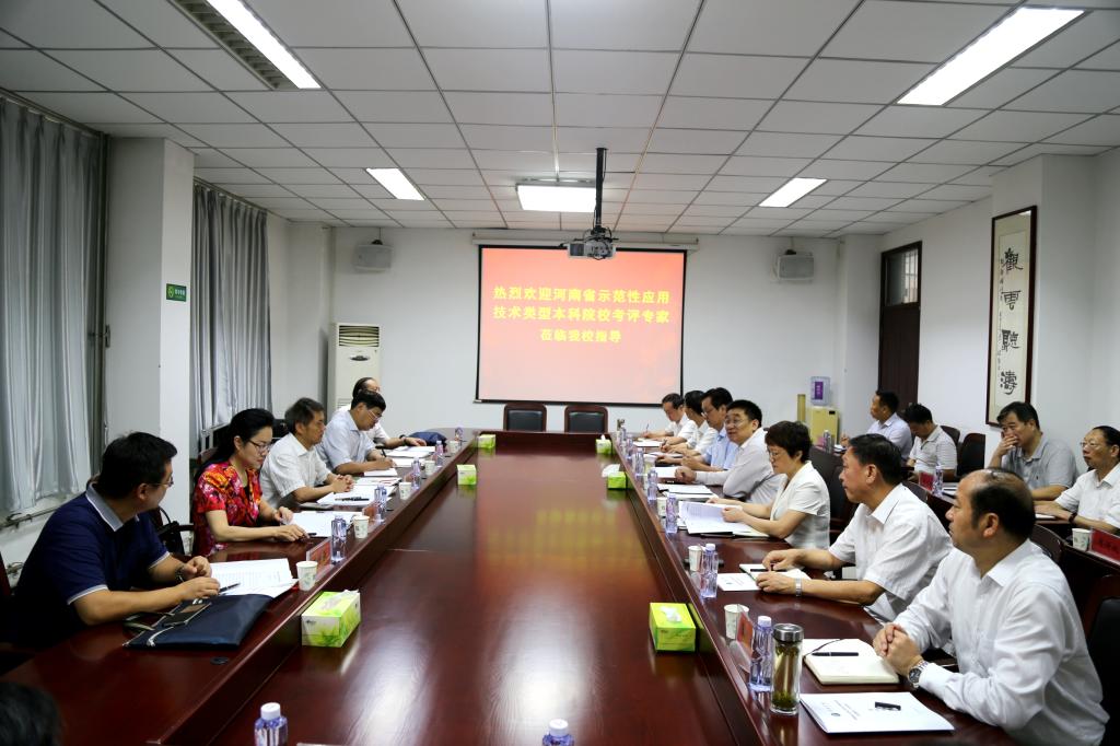 9月19日,以华北水利水电大学副校长王天泽为组长的河南省示范性应用技术类型本科院校建设情况年度考评专家组一行5人对bet36体育在线“示范校”建设工作进行年度考评。bet36体育在线在办公楼第一会议室举行“示范校”建设工作汇报会。校党委书记闫纪建、院长赵继红、党委副书记马超、副院长赵正风、郑直、崔斌、郭涛出席会议,党政办公室、教务处、科技处、人事处、财务处、发展规划处、学生工作处、实验室与设备管理处、基建管理处、教学质量监控与评估处等相关部门负责人参加了汇报会。会议由校党委书记闫纪建主持。