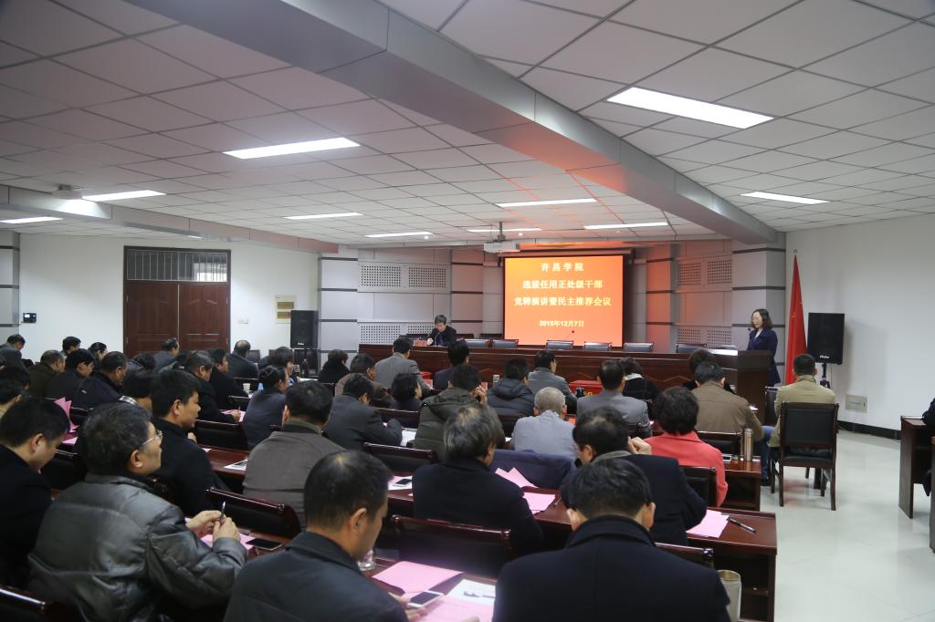 12月7日,bet36体育在线在办公楼第三会议室召开选拔任用正处级干部竞聘演讲暨民主推荐会议。全体校领导、纪委委员及干部教师代表共100余人参加推荐会并担任评委。会议由党委组织部部长谭水木主持。