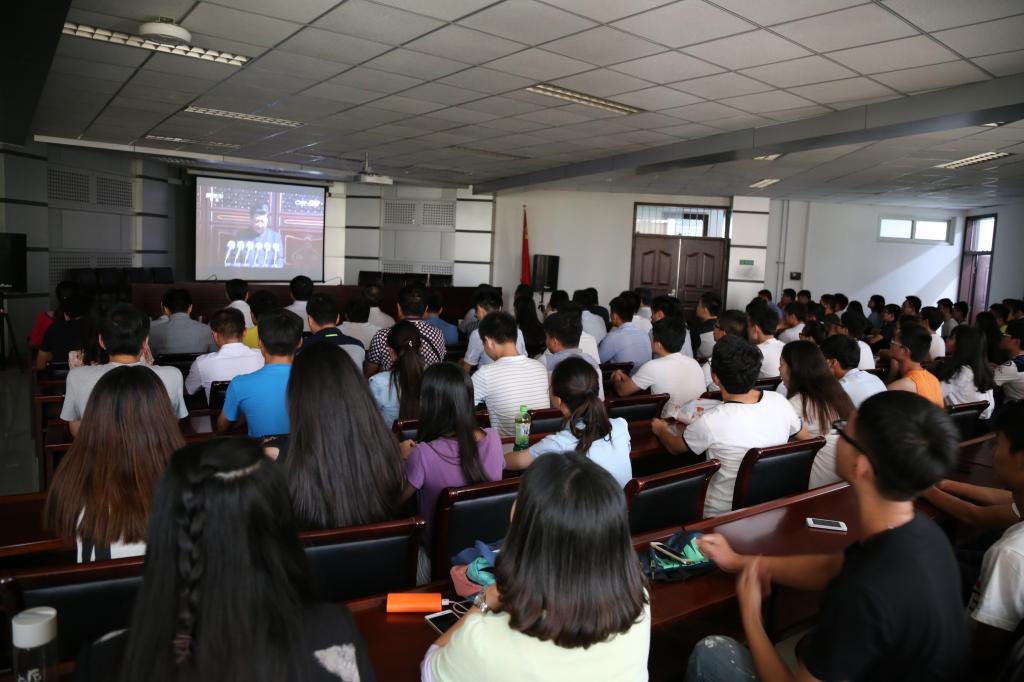 在隆隆的礼炮声和国旗仪仗队铿锵有力的脚步声中,直播会场一片庄严肃穆;礼炮声后,鲜艳的五星红旗在天安门广场冉冉升起,会场上也响起了师生们嘹亮的国歌声。阅兵场上方阵队伍朝气蓬勃的精神面貌、坚定豪迈的步伐、气势磅礴的空中梯队、引人瞩目的新式装备、雄浑激昂的国歌声和军乐声……使观看师生们的掌声、欢呼声不绝于耳,此起彼伏。大家纷纷为受阅方阵的精彩表现而喝彩,为祖国建设发展的巨大成就而自豪。