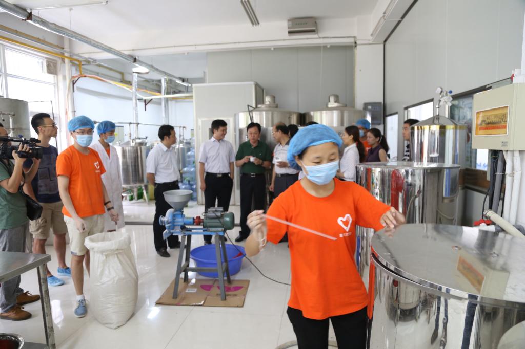 在食品与生物工程学院实训中心,他们看望慰问了bet36体育在线“书香坊”系列健康饮品创新创业实践队队员,详细了解了队员们制作酸奶、矿泉水及啤酒的全过程。在与实践队员交流中,马超副书记指出,同学们不出校门就能全过程参与产品的原料处理、生产、包装、质检和销售,是学校目前将专业与实践结合最为紧密的实践方式,希望同学们珍惜机会,努力学习和掌握好每一项操作技能,真正做到学以致用、知行合一,不断提升自身的应用能力。