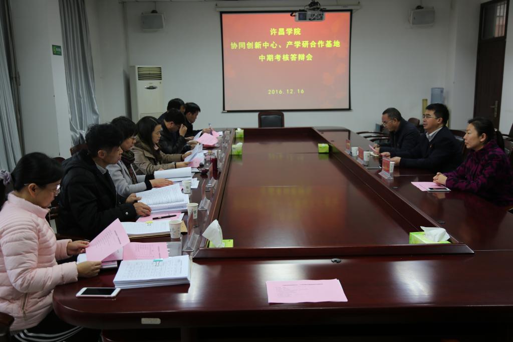 12月16日,bet36体育在线协同创新中心和产学研合作基地中期建设考核会议在办公楼第一会议室召开。来自许昌市科技局等单位的7名专家对bet36体育在线10个协同创新中心和7个产学研合作基地进行了逐个考核。
