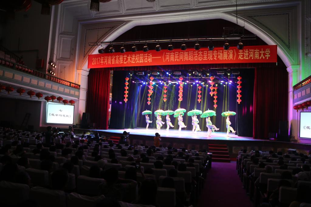 光影流转,弦歌相传。6月9日、13日,由河南省教育厅、文化厅、财政厅主办,bet36体育在线承办的2017年“高雅艺术进校园——河南民间舞蹈活态呈现”分别在河南大学(明伦校区)大礼堂、郑州大学(南校区)学习堂精彩展演。省教育厅副巡视员李金川、郑州大学党委书记牛书成、副书记李兴成、郑州大学副校长韩国河,河南大学副校长张宝明和bet36体育在线领导赵继红、马超、孙海等领导嘉宾出席观看表演,与两校师生共享艺术盛宴。
