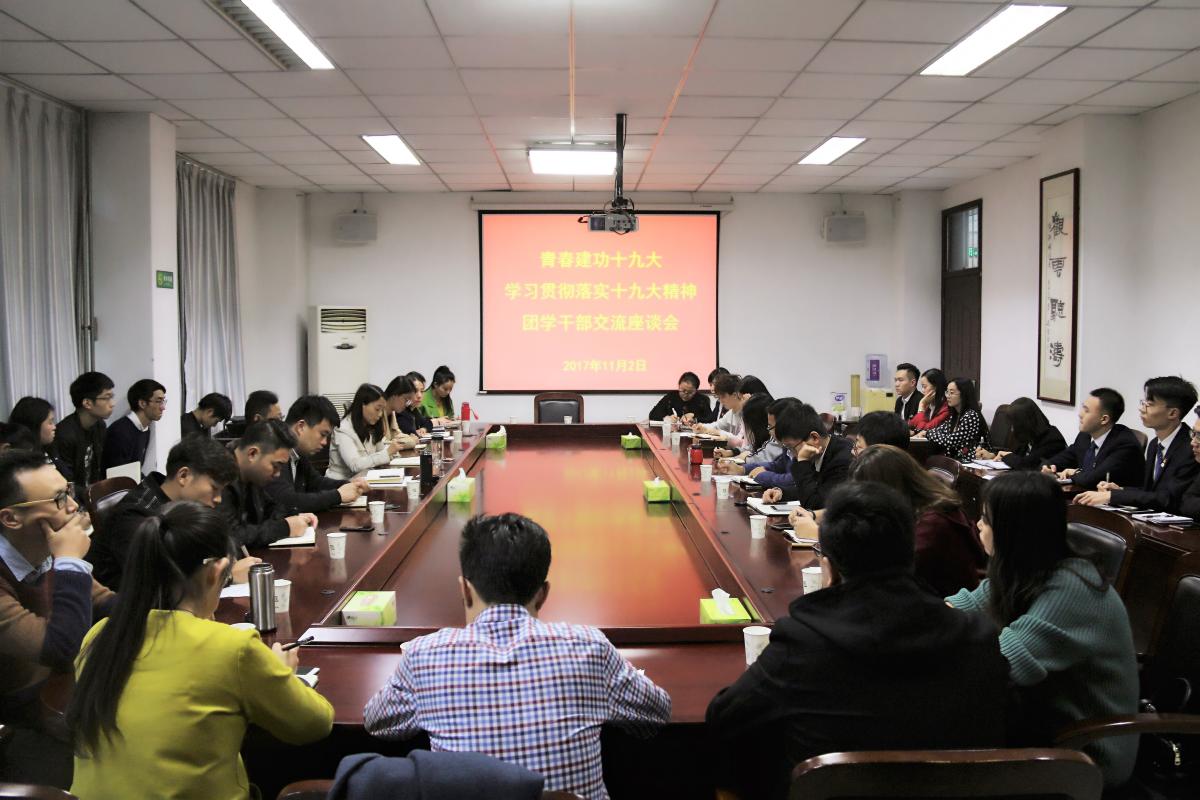 座谈交流期间,参与的团学干部分别对学习十九大报告进行了交流。城乡规划与园林学院团总支书记赵学琴用“自豪”、“自信”、“很期待”三个关键词表达了对十八大以来中国发展巨变的直观感受;国际教育学院团总支副书记李茜对十八大以来党领导中国人民取得的巨大成就表示自豪,对党表示崇敬与信任;校学生会主席周康源表示要发挥学生干部的模范带头作用,争做新时代的“三有”青年;文学与传媒学院学生会主席李松泽谈了青年学生应当承担的责任与做法。