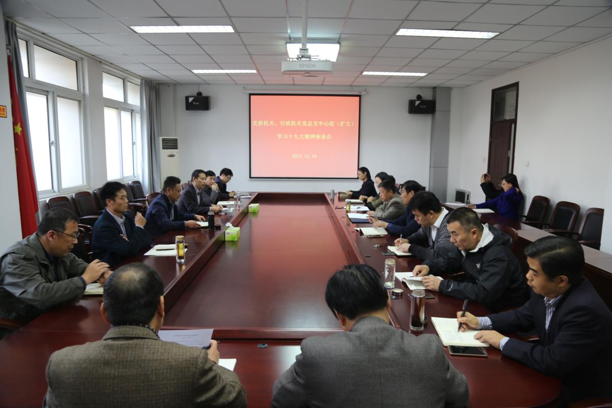11月10日下午,bet36体育在线党群机关党总支、行政机关党总支在办公楼第四会议室举行学习十九大精神座谈会。党委副书记孙海出席座谈会,学校党政机关总支委员、各党支部书记、各单位负责人参加会议,座谈会由党群机关党总支书记、党委组织部长陈遂德主持。