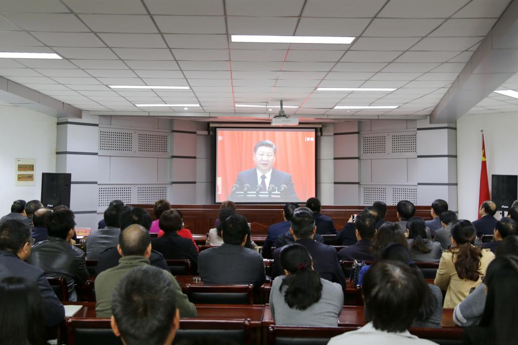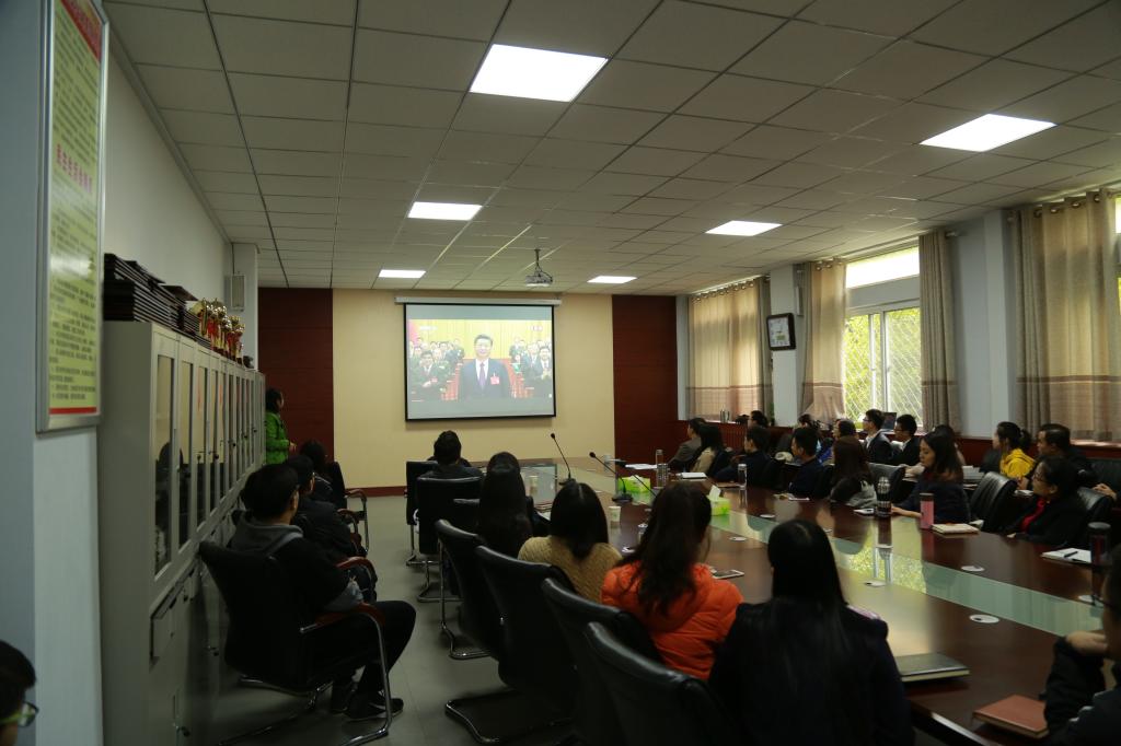 校领导和党群机关党总支、行政机关党总支机关的全体党员一同收看“十九大”开幕会