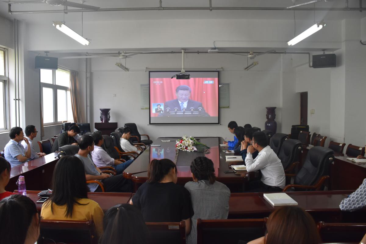 党委书记闫纪建,副书记马超、孙海,纪委书记罗凤英,副院长赵正风、崔斌,工会主席高金星和党群机关党总支、行政机关党总支的全体党员在办公楼第三会议室一同收看了大会实况,全校31个基层党委(党总支、直属党支部)认真组织师生集中收看大会的直播。