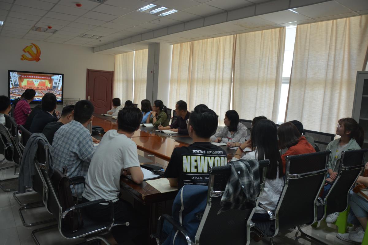 在观看大会直播过程中,大家仔细听记,认真领悟习近平总书记的讲话精神。师生们热议习近平总书记重要讲话,大家一致认为马克思是人类社会最伟大、最崇高、最彻底的共产党的创立者和科学共产主义的奠基人。马克思主义是中国共产党推进革命、建设和改革事业的根本指导思想和行动指南。在马克思主义指导下,中国取得了举世瞩目的历史性成就,步入了中国特色社会主义新时代。