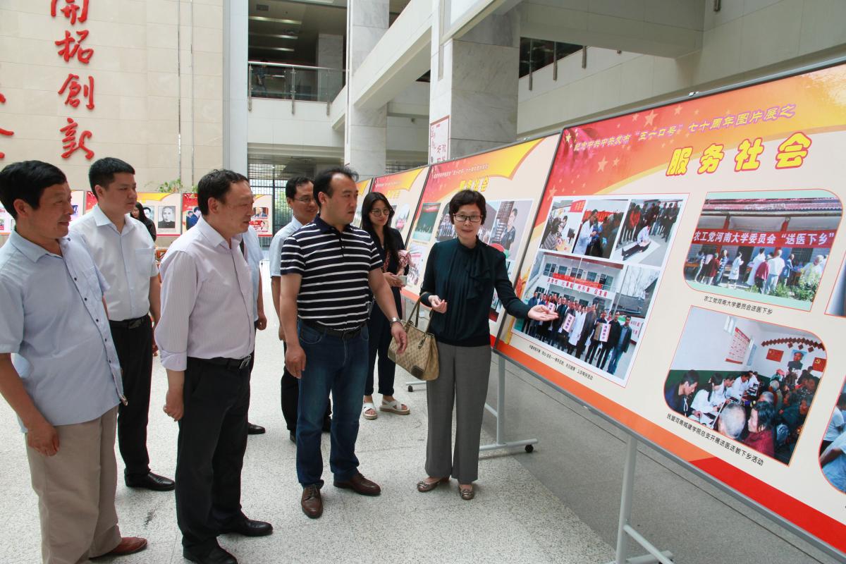 在河南大学金明校区,大家参观了该校承办的纪念中共中央发布“五一口号”70周年——河南省高校统一战线发展建设主题图片展。图片展以“不忘合作初心、继续携手前进”为主题。展览以图文的形式,生动翔实地展现了我省高校统一战线发展建设的光辉历程,内容覆盖思想引领、民主党派与统战团体自身建设、参政议政和服务社会等各个领域。展览图片展既有一定历史价值的老照片,又有近年来各高校统一战线发展的鲜活写真。bet36体育在线选送的多幅图片入选该主题图片展。