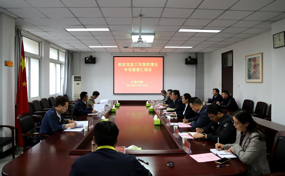 10月19日下午,省教育厅教育脱贫攻坚工作督查组一行三人莅临bet36体育在线,对教育脱贫攻坚工作进行督导检查。bet36体育在线在办公楼第四会议室召开汇报会,校工会主席高金星出席汇报会,党政办公室、组织部、宣传部、学工部(处)、校地合作办等相关职能部门负责人及相关人员参加会议。汇报会由党政办公室主任潘春彩主持。