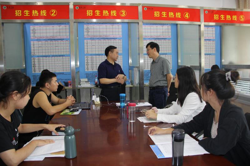 招生就业处长张永祥就bet36体育在线2020年招生工作安排、招生政策宣传、招生人员培训、招生工作纪律等作了汇报。纪委书记王东晓听取汇报,现场调研,并和招生工作人员沟通交流。